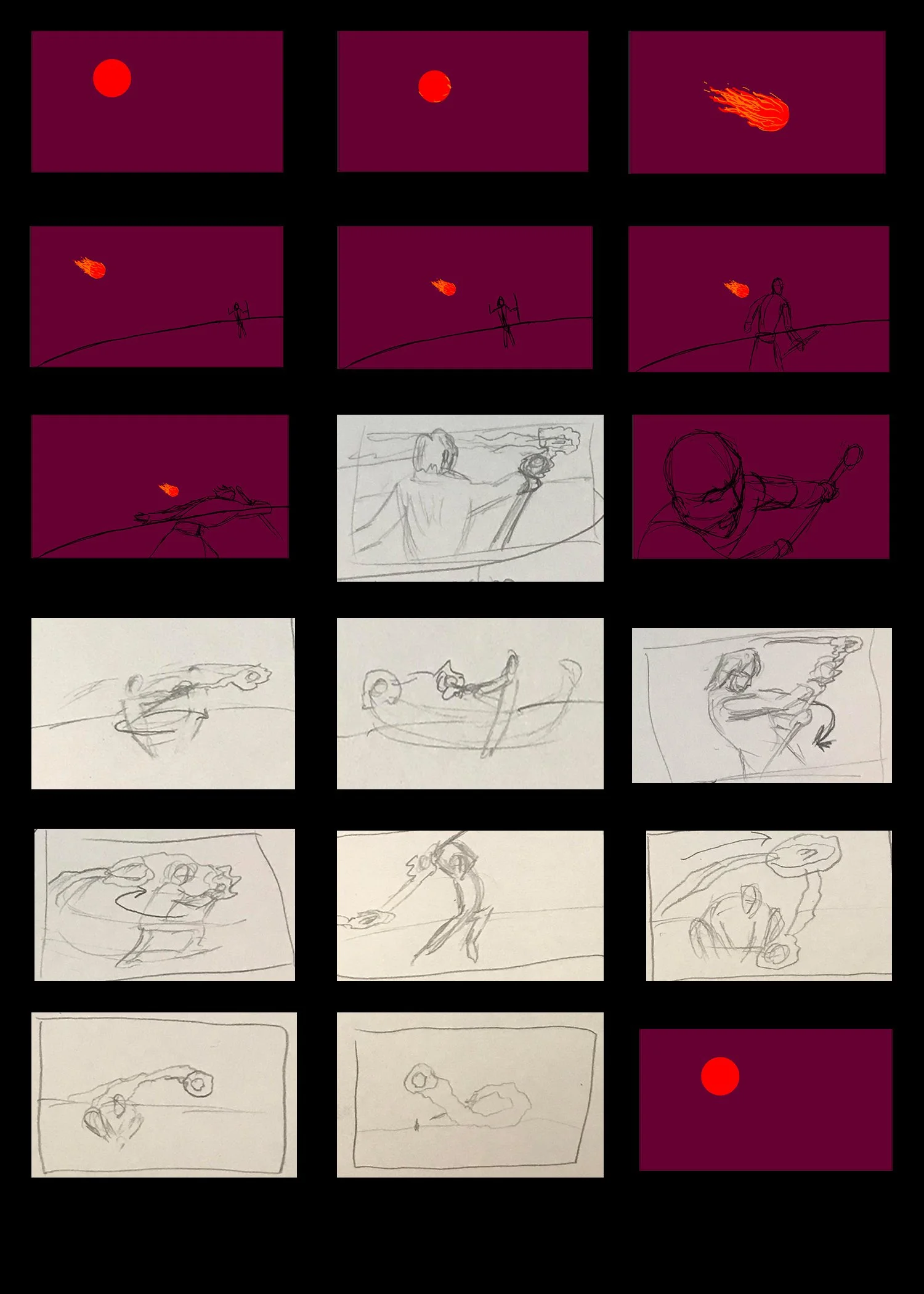 This starts out with a red ball, like all of them do, but it quickly morphs into a burning fireball. The camera follows it as we see a person on the horizon. This person has to dodge out of the way and we see he has a staff. Looking over his shoulder he’s able to keep his eye on the fireball. Using his speedy thinking, he uses his staff to project energy to capture the ball, this causes him to start spinning in place as he prepares to hammer toss it. A few spins and he leaps up to catapult the fireball back the way it came where it eventually turns back into the same red ball that started the whole thing. This little action scene will allow me to get some action work in on animation, but also will allow me to get better at timing the secondary actions and overlapping action with the hair and most importantly the spinning fireball hammer throw set. Not to mention the smoke trail will be a cool additive in my mind. The only issue is how many frames can I feasibly do all this in and still be able to hit the deadline? Well, that’s for future Drew to figure out. Until then, catch you in the next blog where I’m hoping to get down my color palette and some source images for references. See you then!